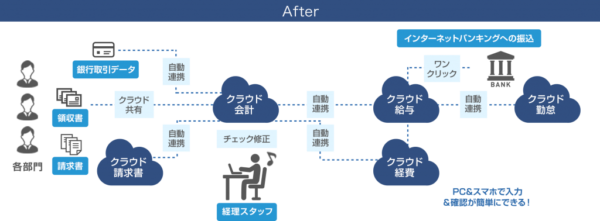 必要に応じたクラウドツールを導入することにより、経理担当者の負担を減らし、効率的かつスピーディーに経営数値を出せるようになります。